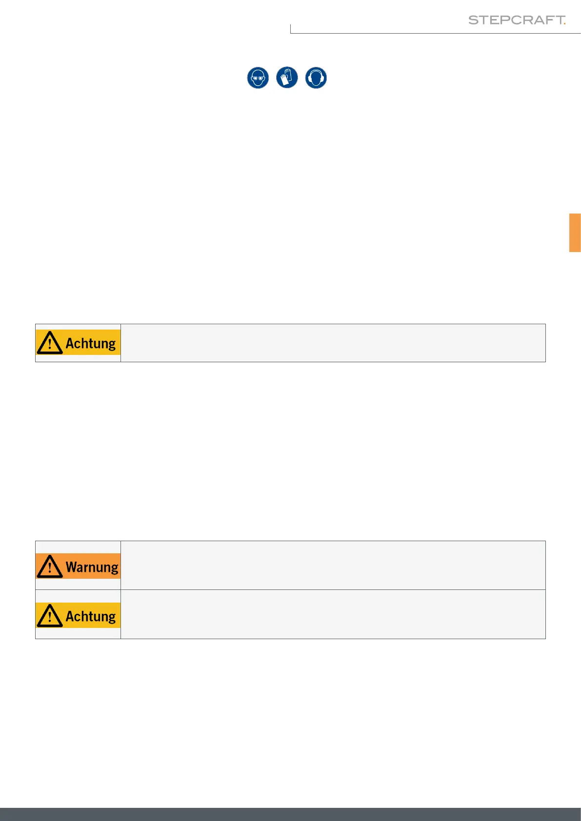 • Schutzbrille zum Schutz der Augen und Handschuhe (außer im Betrieb) zum Schutz der Haut vor Spänen und