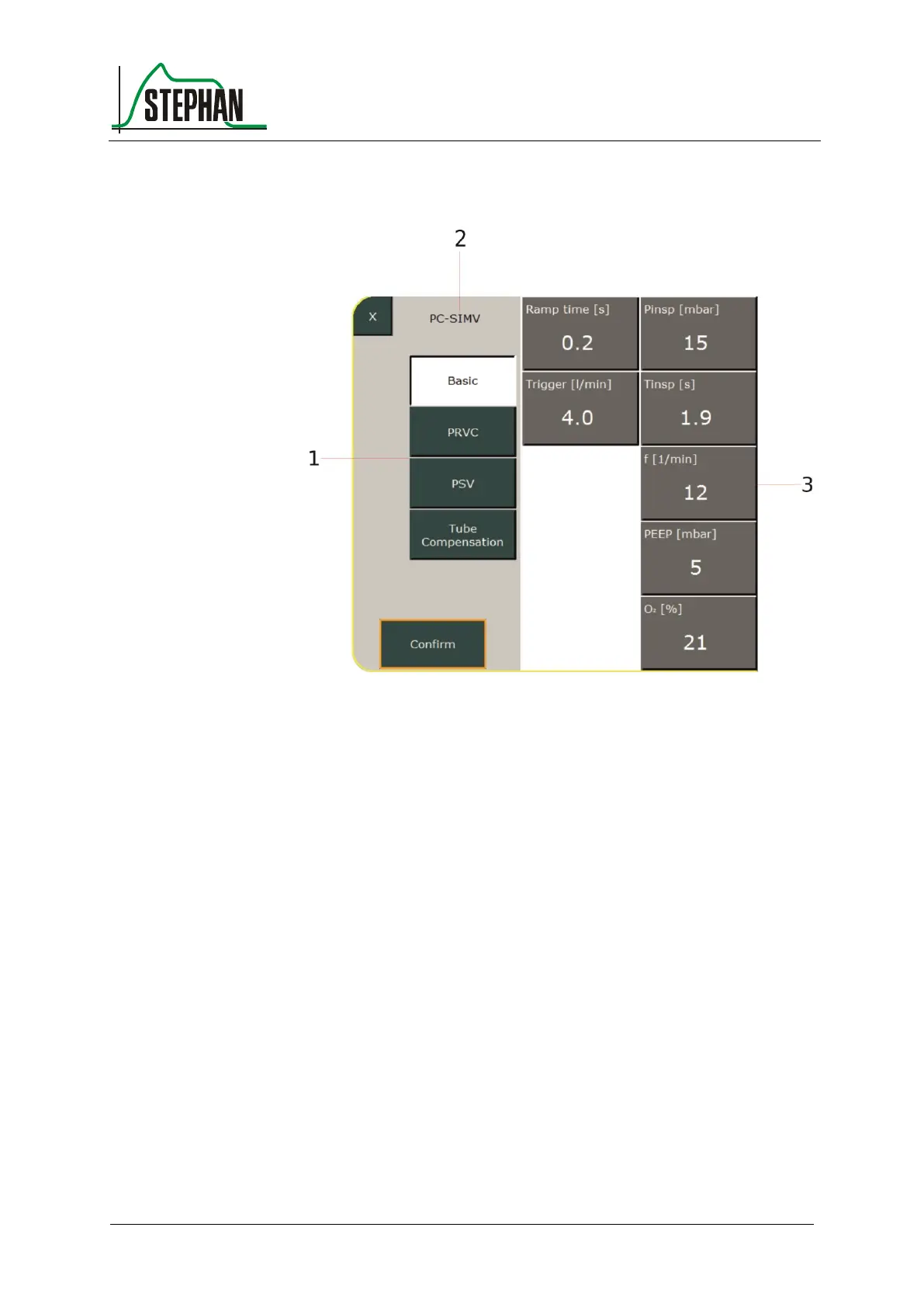 the desired PC-SIMV option, the corresponding ventilation parameters
