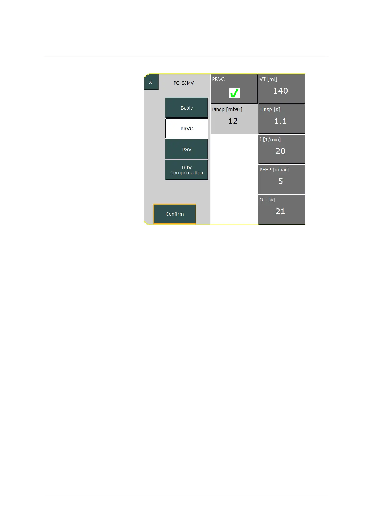 Fig. 91: PC-SIMV with PRVC parameter setting