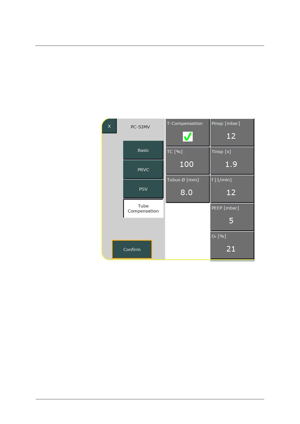 Fig. 96: Configuring tube compensation with PC-SIMV