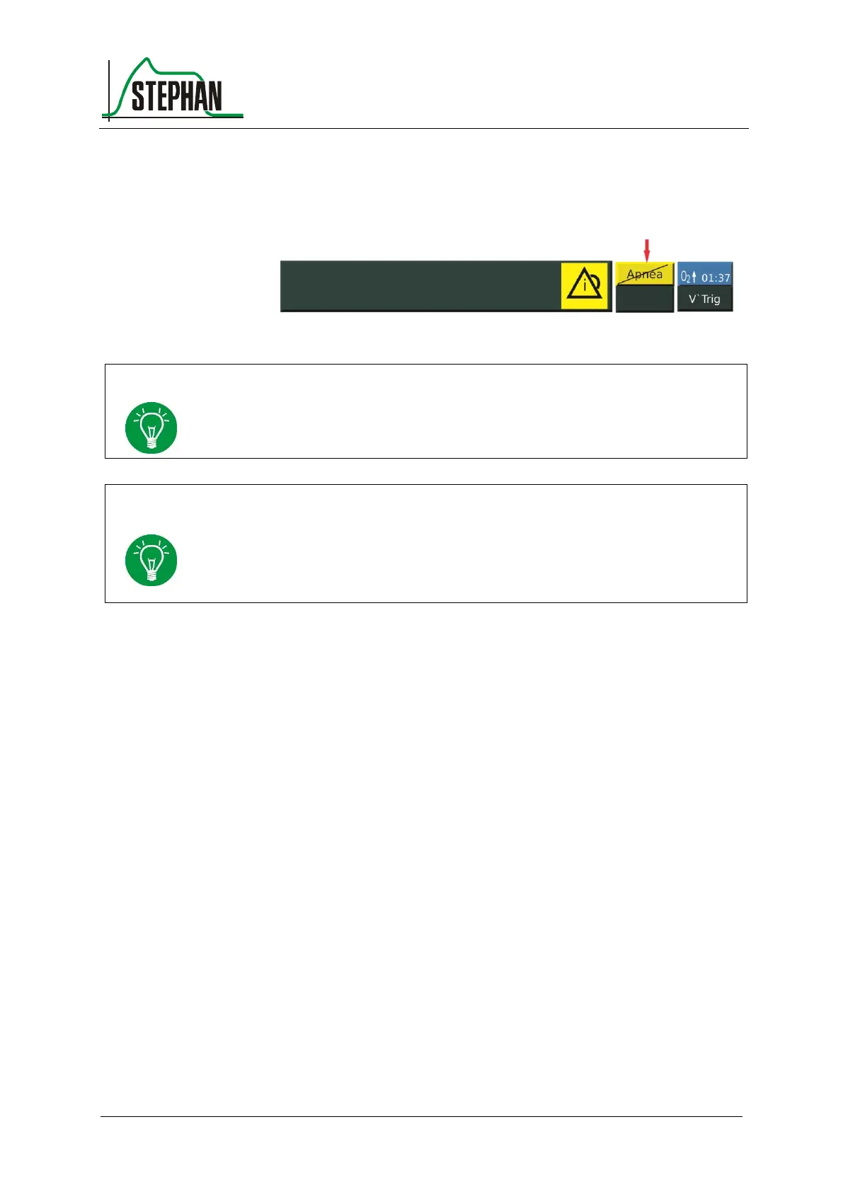 Fig. 21: Status, alarm, and info display, "Apnea alarm deactivated"