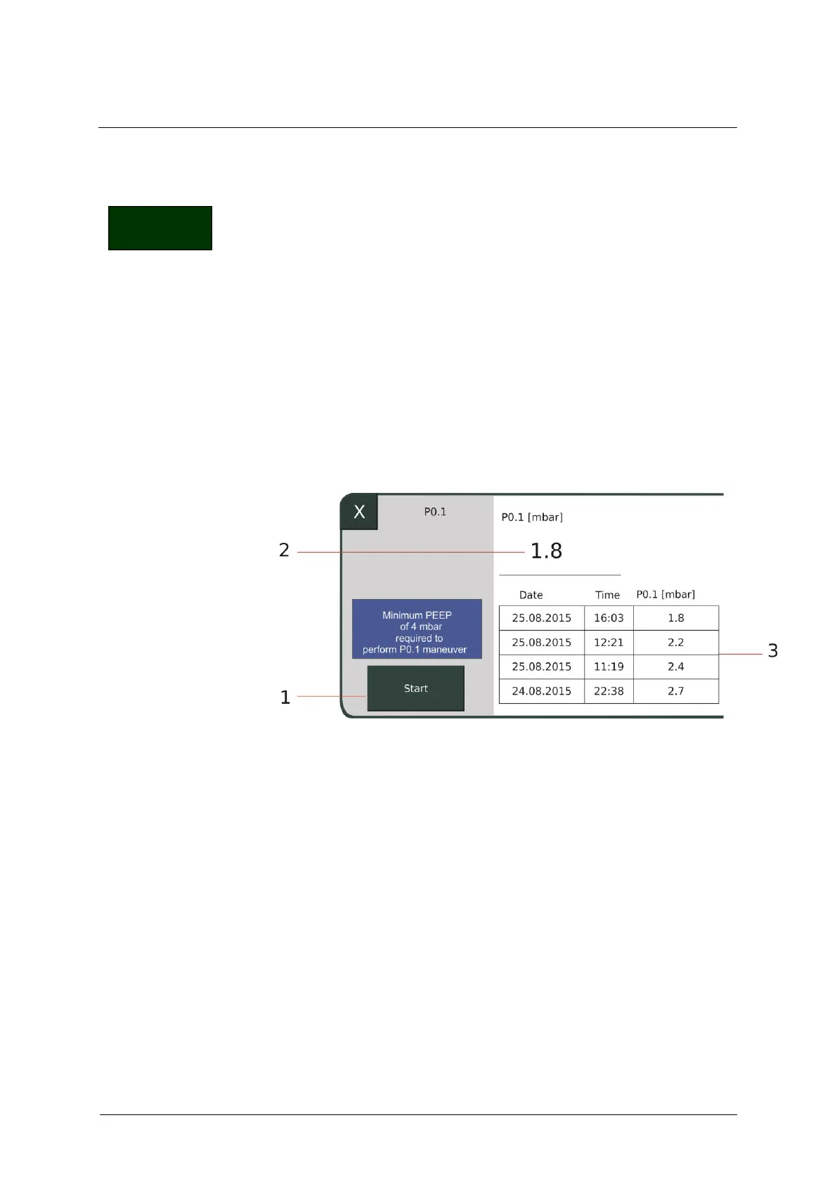 P0.1 value. Then select the »Start« field. At the patient's next inspiration,