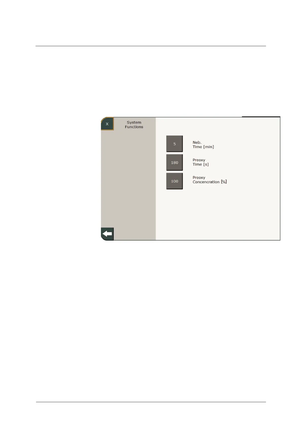 Lets you set the aerosol nebulization time (5 – 30 min). Aerosol