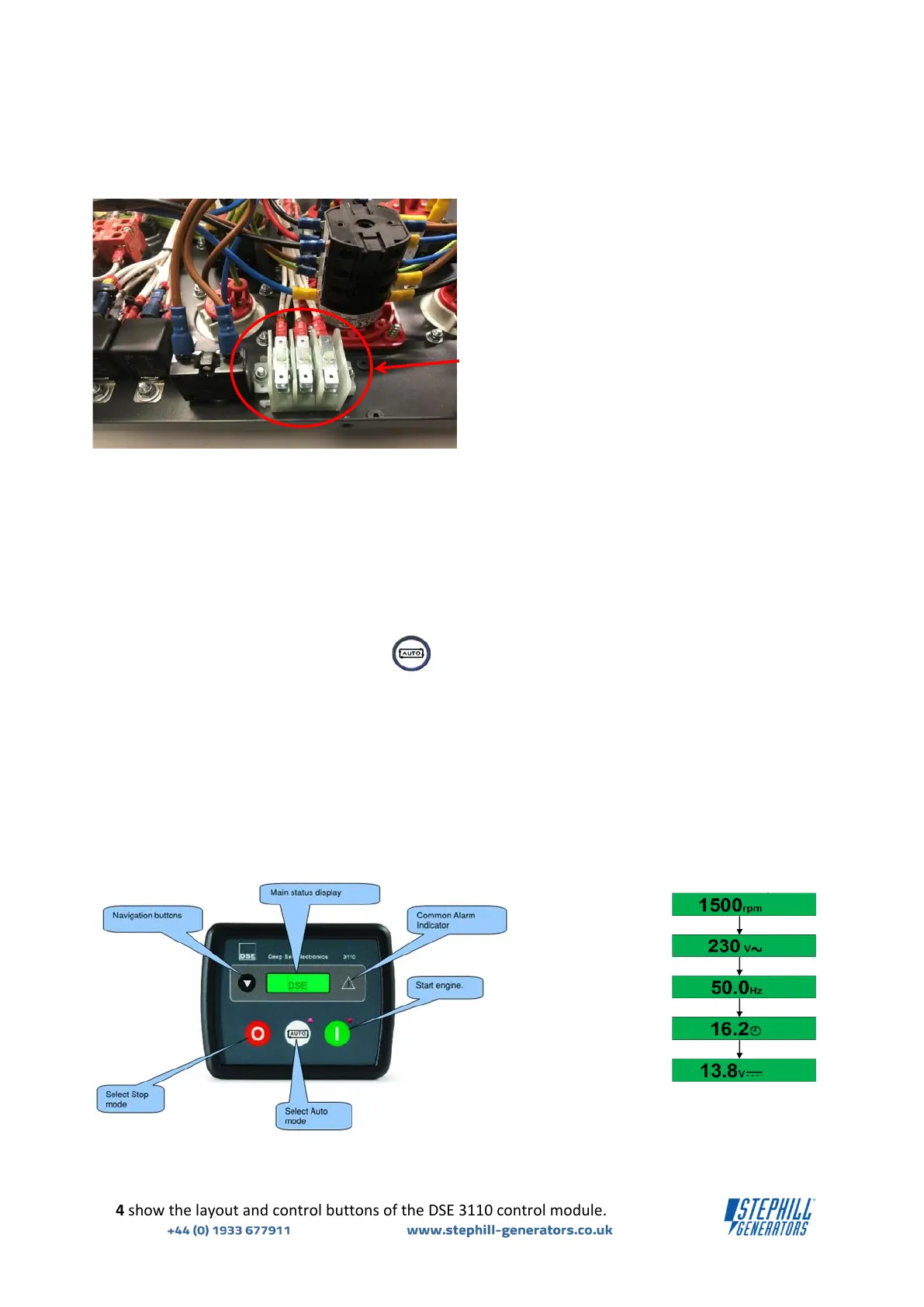 Stephill SE6000D4 - Automatic Start Operation; Automatic Stop Operation; DSE 3110 Control Module - Overview; Description of Controls