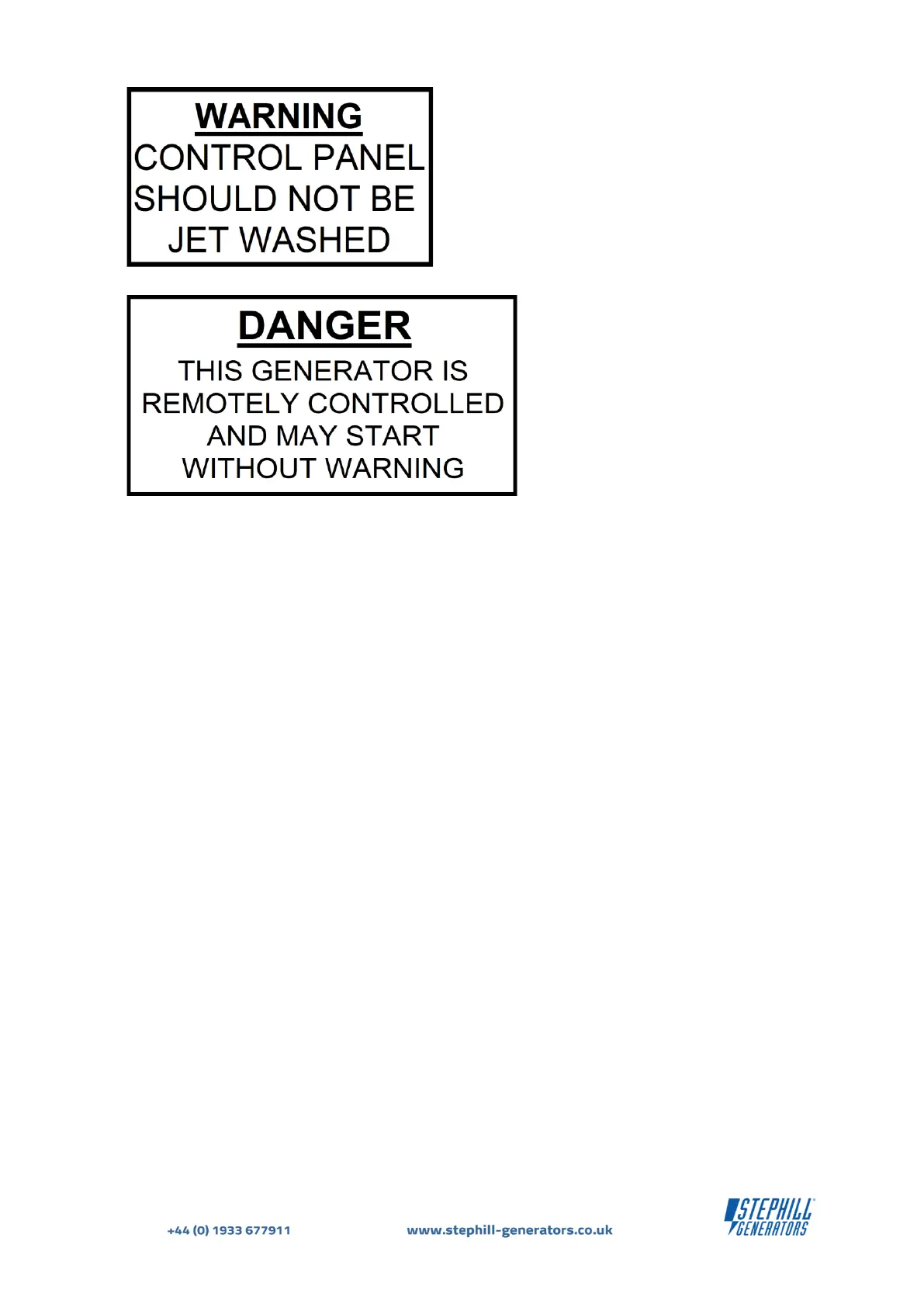 • Do not climb on the generator - dents may cause overheating of the acoustic lining.