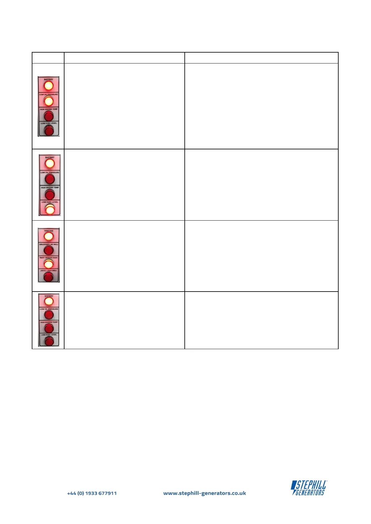 the BATTERY and LOW FUEL LEVEL lamps are