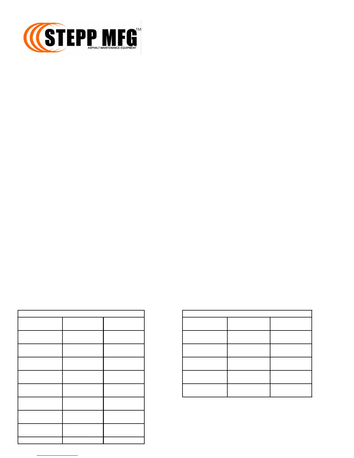 Stepp Manufacturing will supply a replacement heated asphalt hose or heating element, along with one-half (0.5) hour for