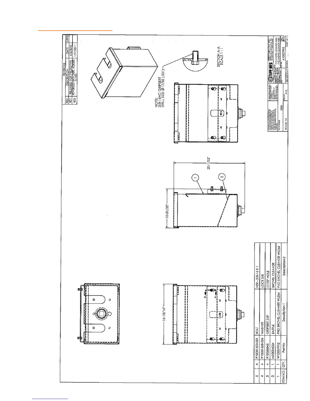 REPLACEMENT PARTS Shovel Cleaning Compartment
