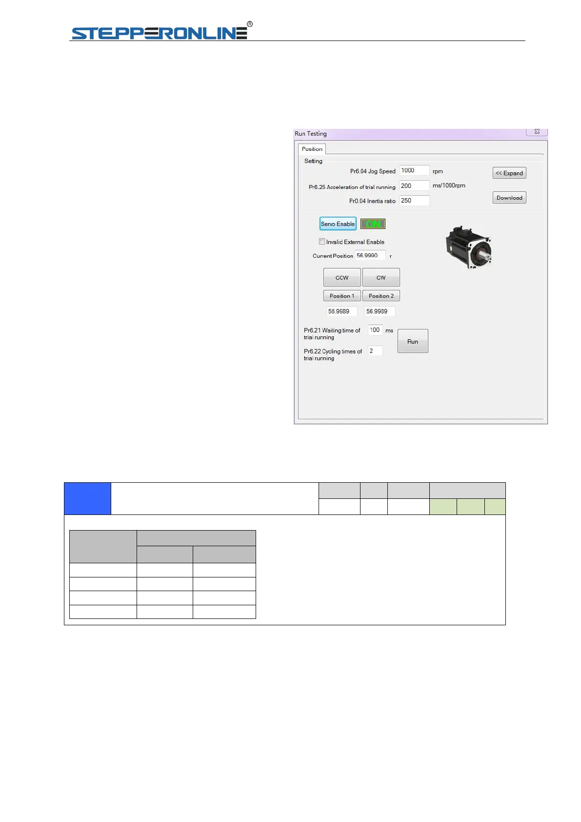 Click “CW” to make motor run in CW