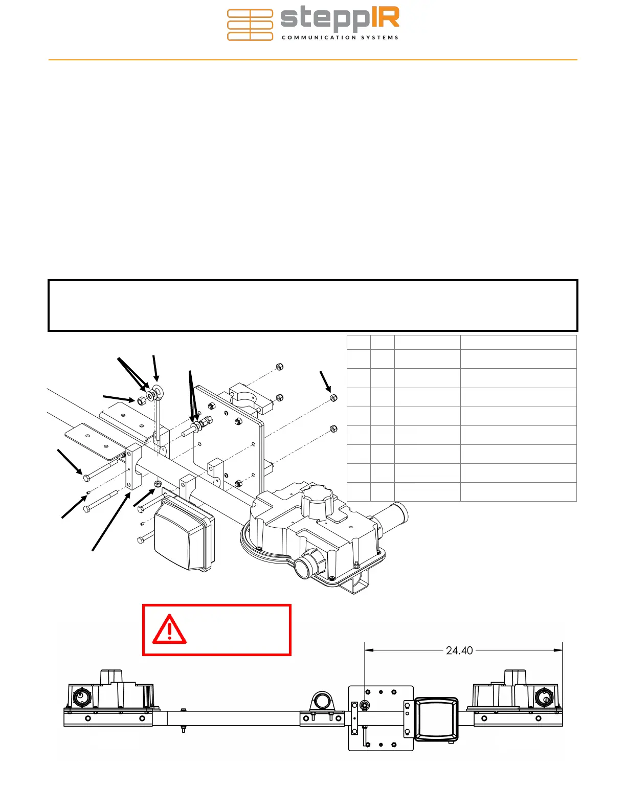 • Use the exploded view drawing below to install the mast plate. Discard the included washer and non-