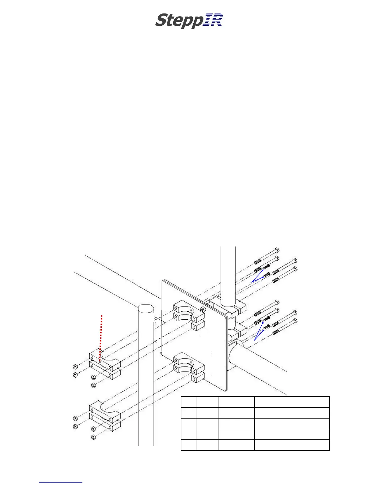 saddles rest against the mast plate and are held firmly to the mast plate using #10 x 5/8” machine screws,