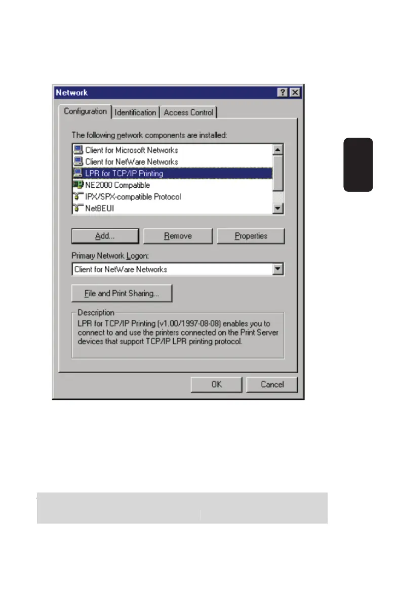 3. Choose the LPR for TCP/IP Printing client and click the