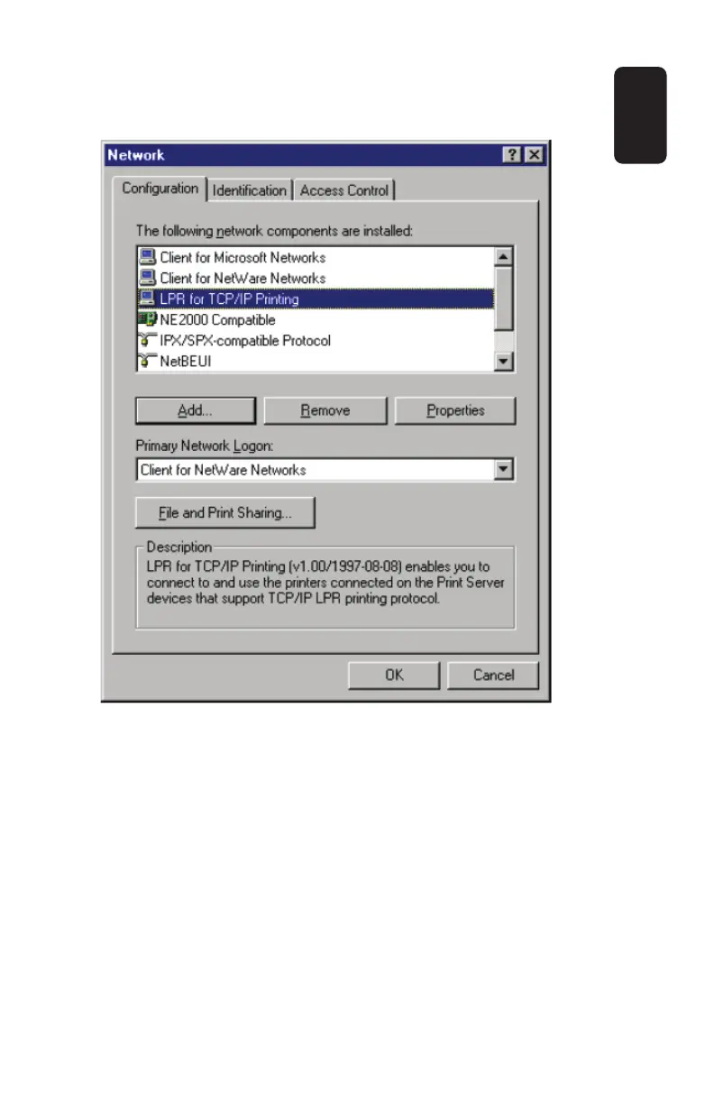 3.- Seleccione LPR para el cliente de impresión TCP / IP y
