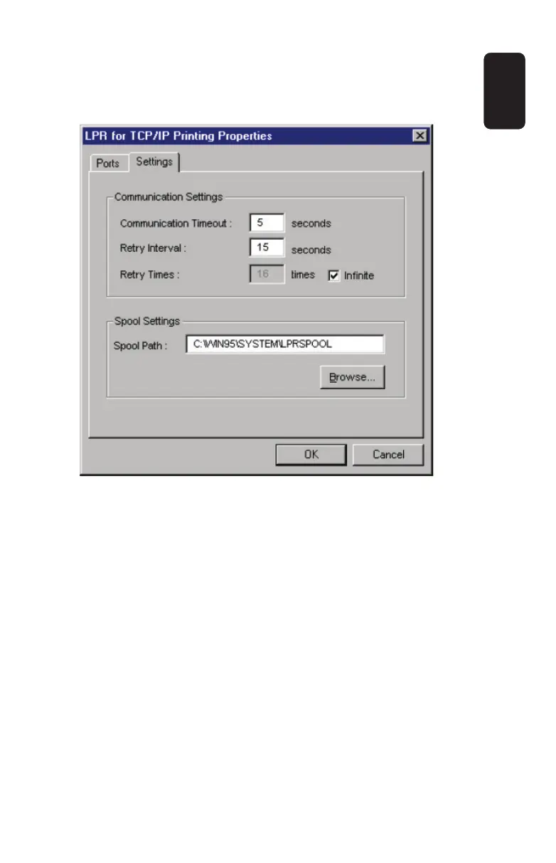 un servidor lpr/lpd. Si selecciona Infi nite, el sistema intentará la