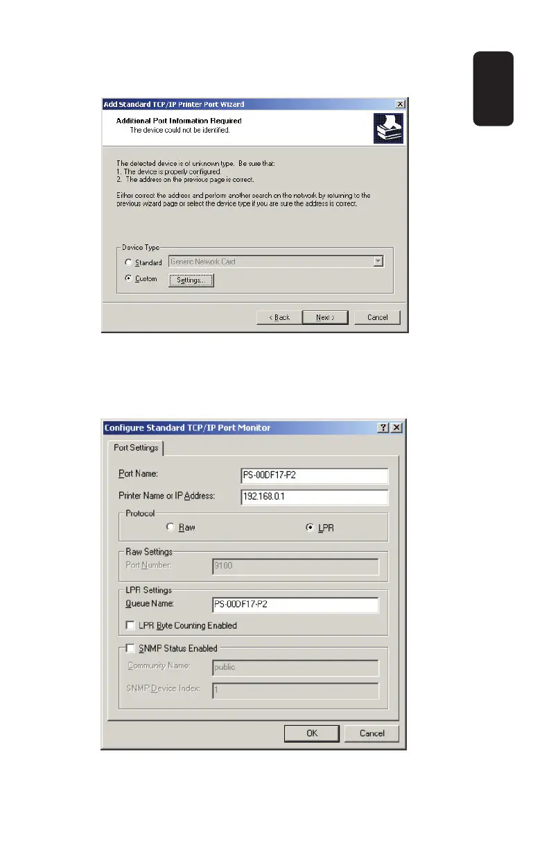 8.- Seleccione LPR y escribe el nombre del puerto en el campo