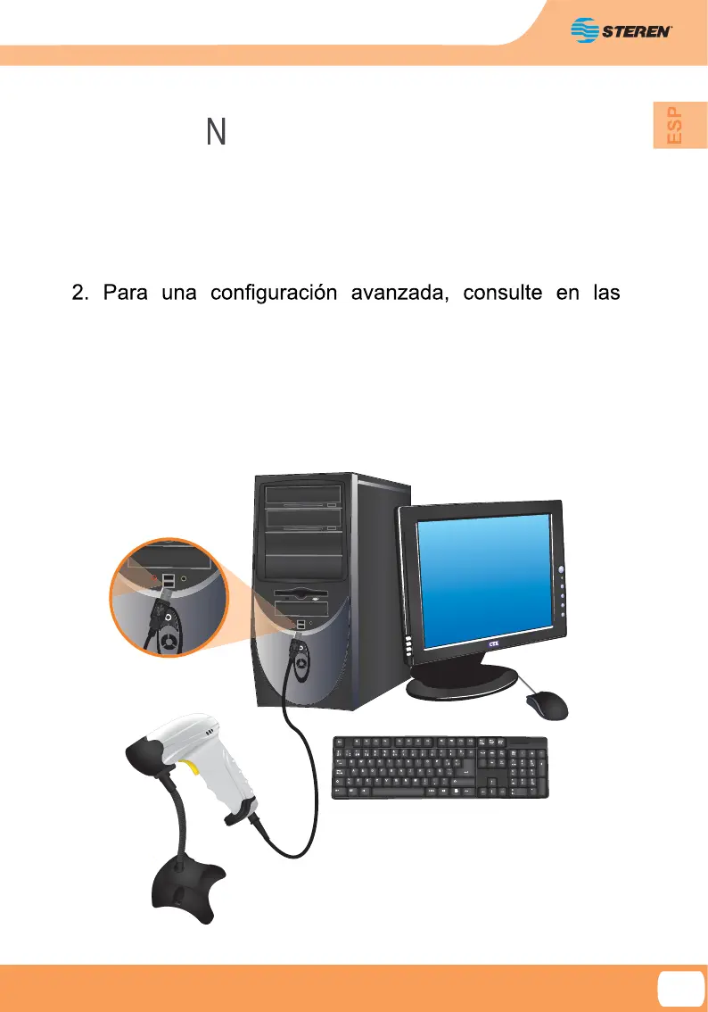 1. Utilice el cable USB – RJ45 para conectar el lector a una