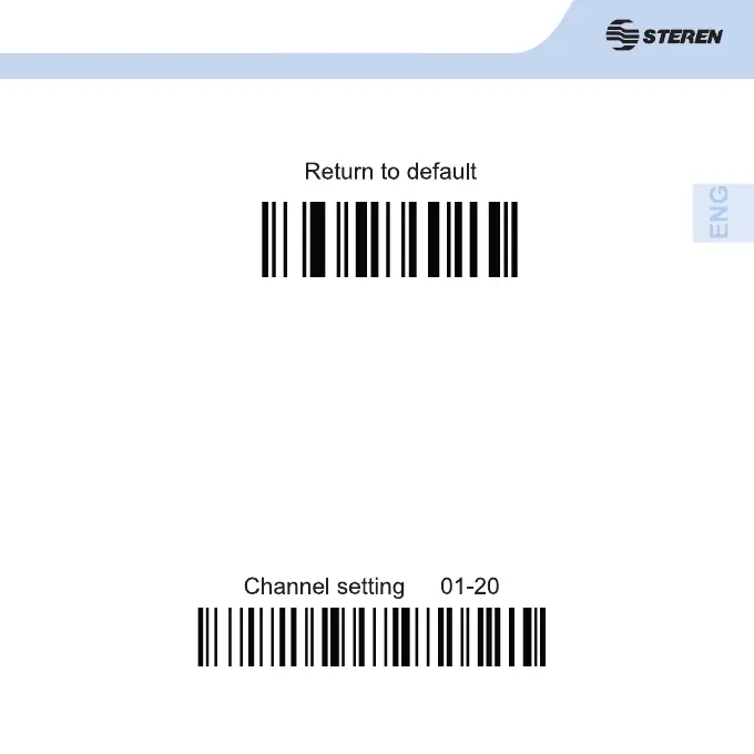 receiver to the PC, scan the code “Channel setting 01-20”, then the number 0