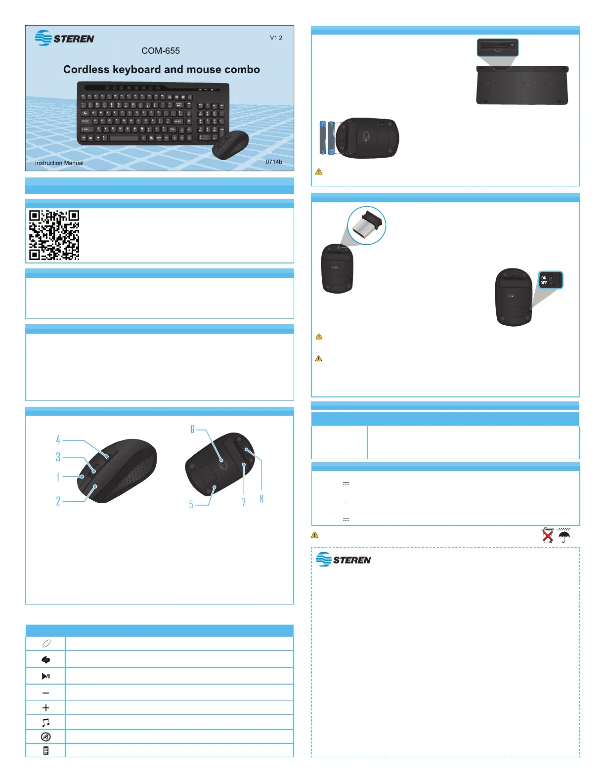 When you´re not using the keyboard or mouse for a long time, remove the batteries to avoid