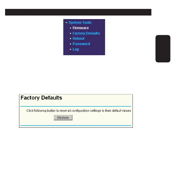 Defaults, Reboot, Password y Log.