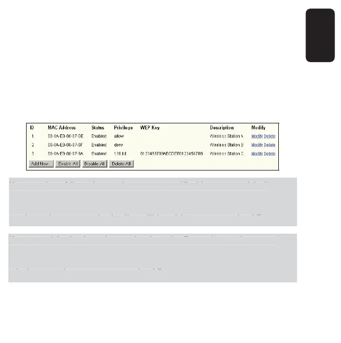 entries in the list to access for Filtering Rules, the wireless station