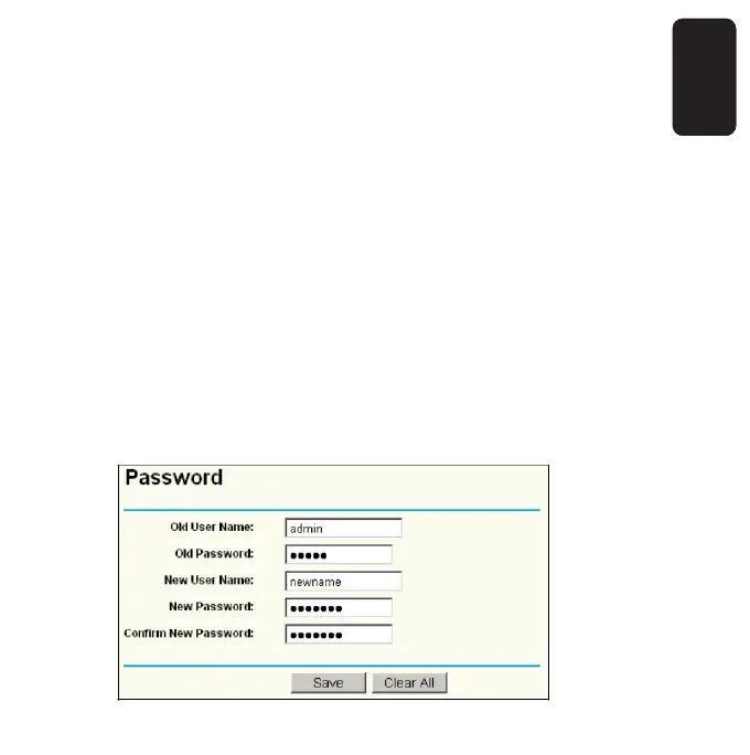 This page allows you to change the factory default user name and