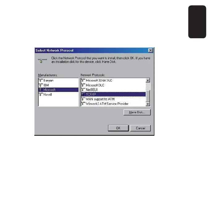 Microsoft. Under Network Protocols, highlight TCP/IP. Click OK. TCP/IP