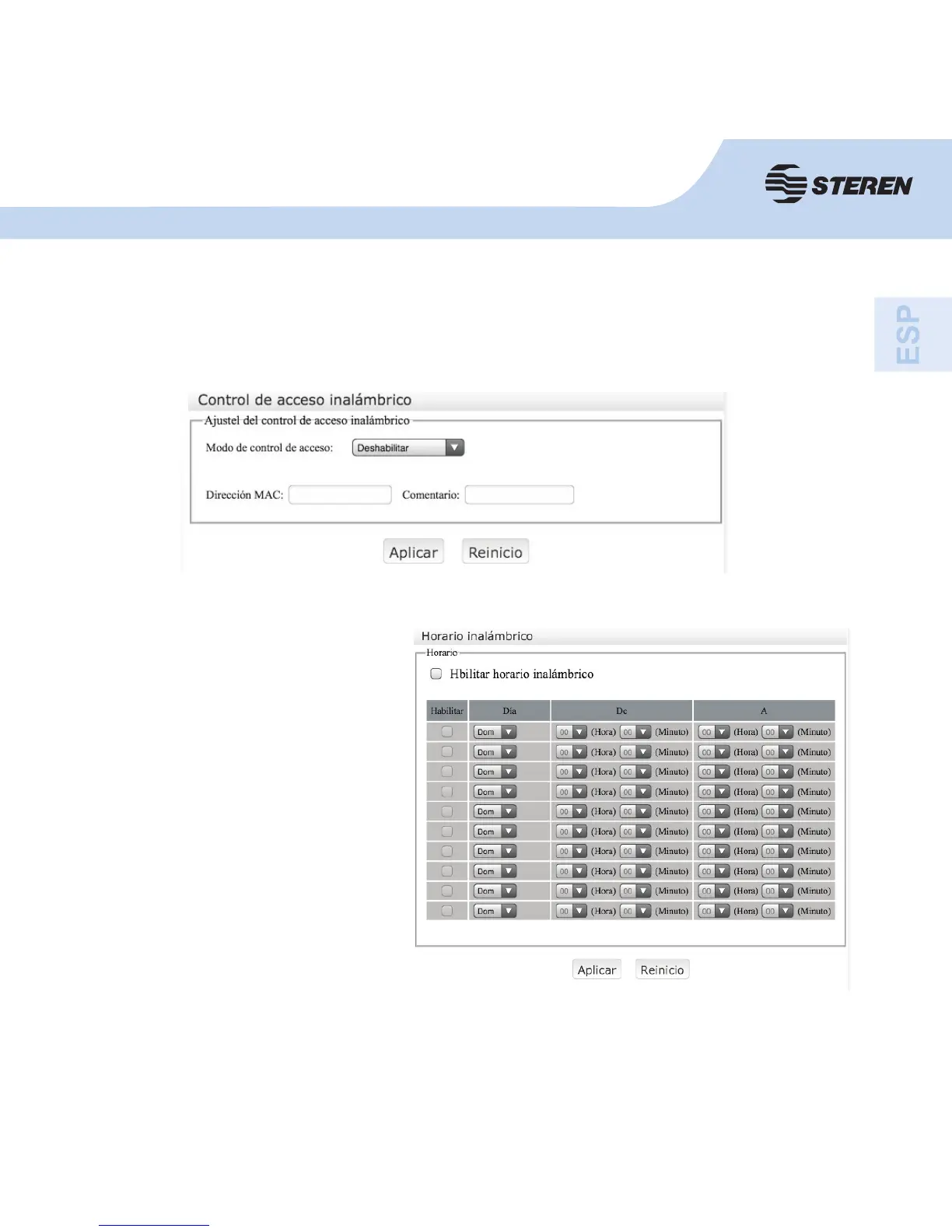 Aquí puede confi gurar el control de acceso inalámbrico basado en la dirección MAC.