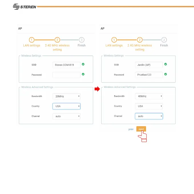 3. Selecciona ancho de banda (20 o 40 MHz)