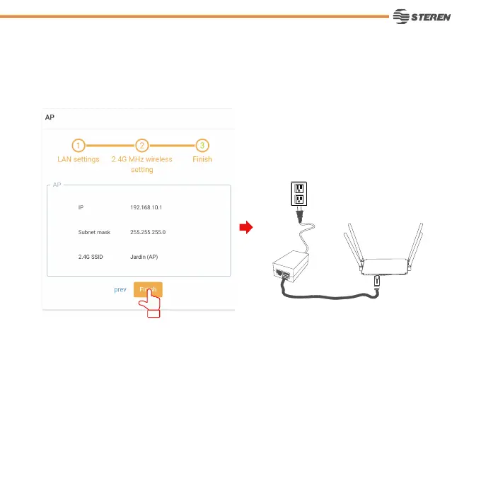 8. Revisa los datos de red, si están correctos, presiona Finish, y conecta el cable de red de tu
