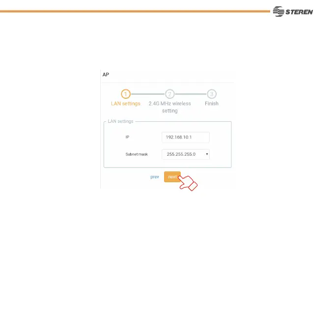 6. Press next. (Only if you require, change the IP data and Subnet mask before to select next).