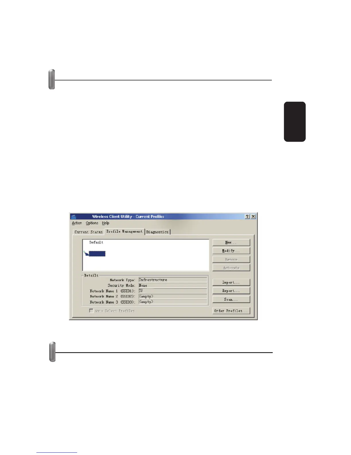 The Profi le Management dialog box will display a screen similar