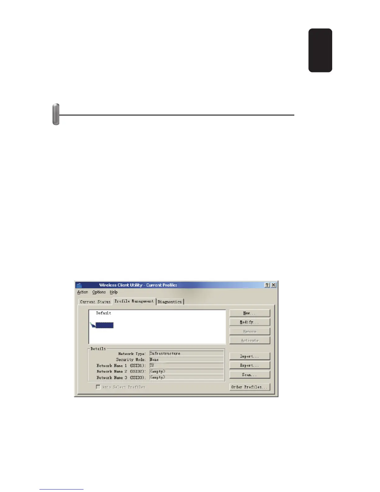 Seleccione la opción Profi le Management en la utilidad Wireless