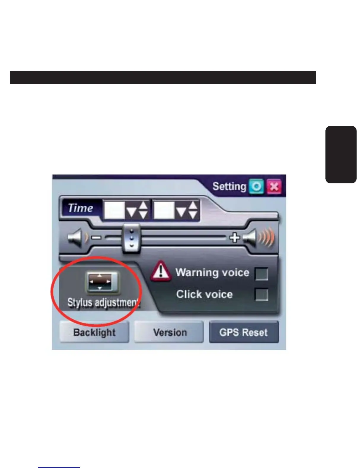 1.- En el menú de Setting, seleccione Stylus Adjustment para iniciar el