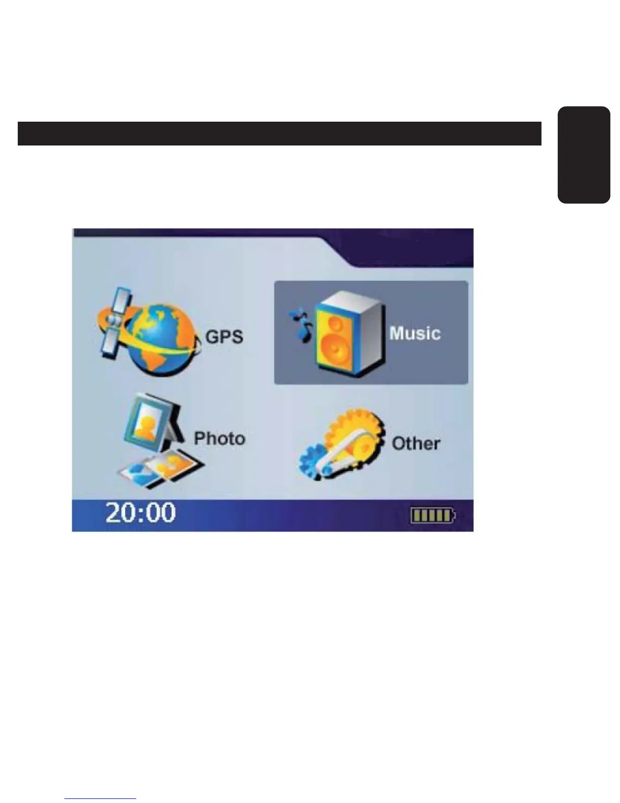 2.- Power on the GPS, and select the Music icon on the main menu.