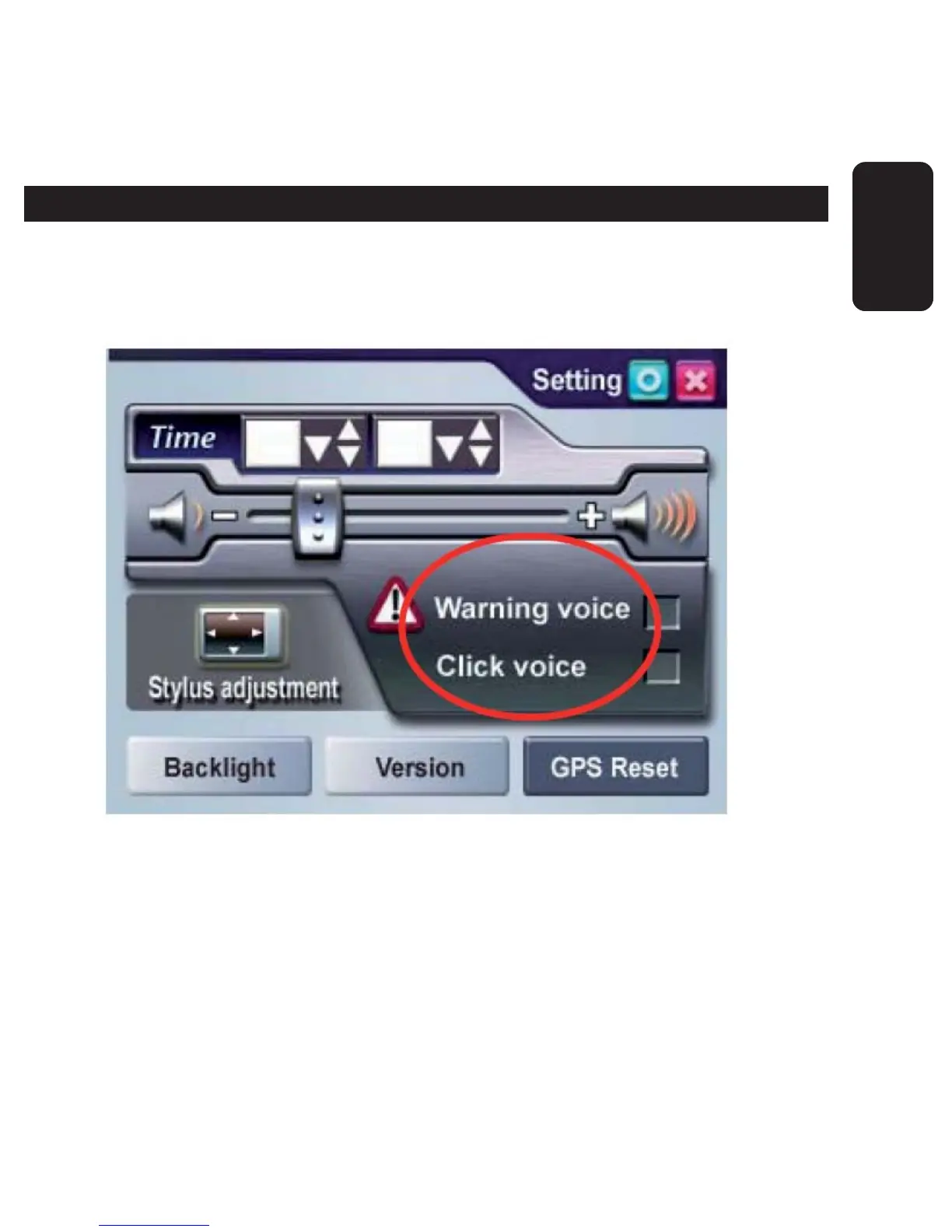 1. Under the settings window, check on the Warning Voice to check /