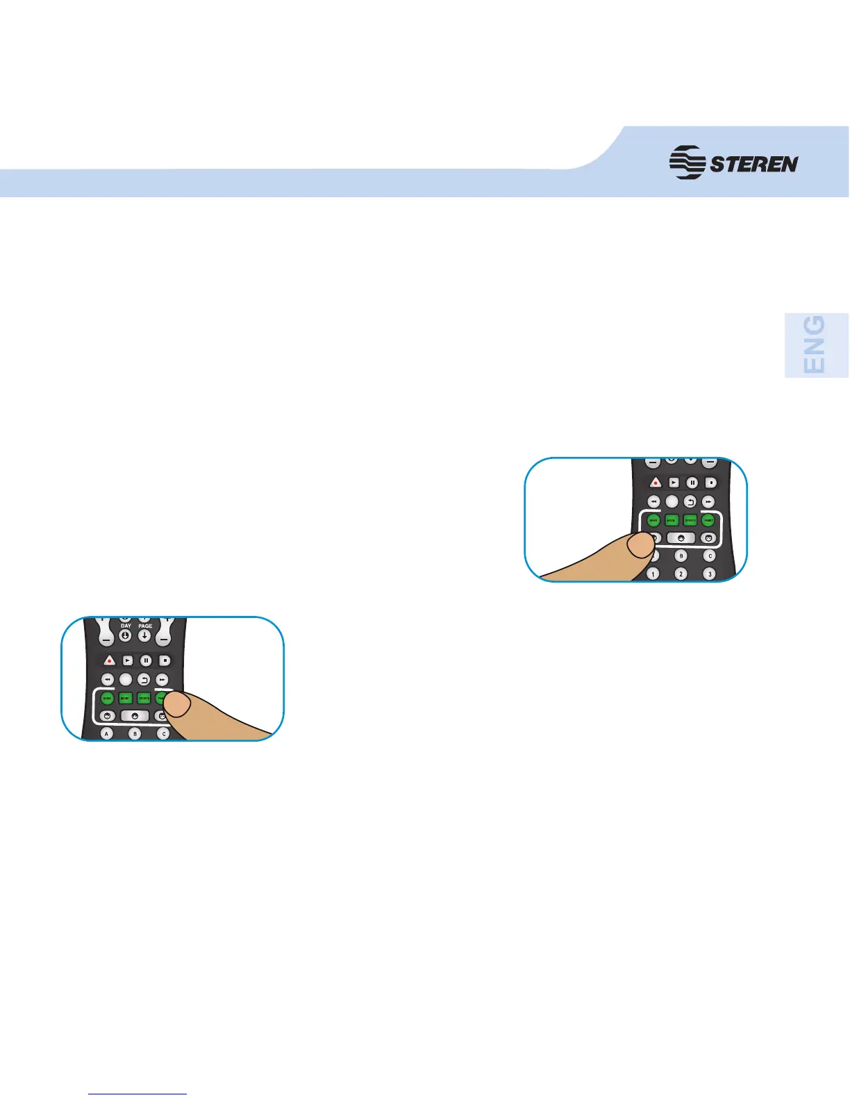 The remote control includes four genre keys: News, Movies, Sports (sports) and Family, that