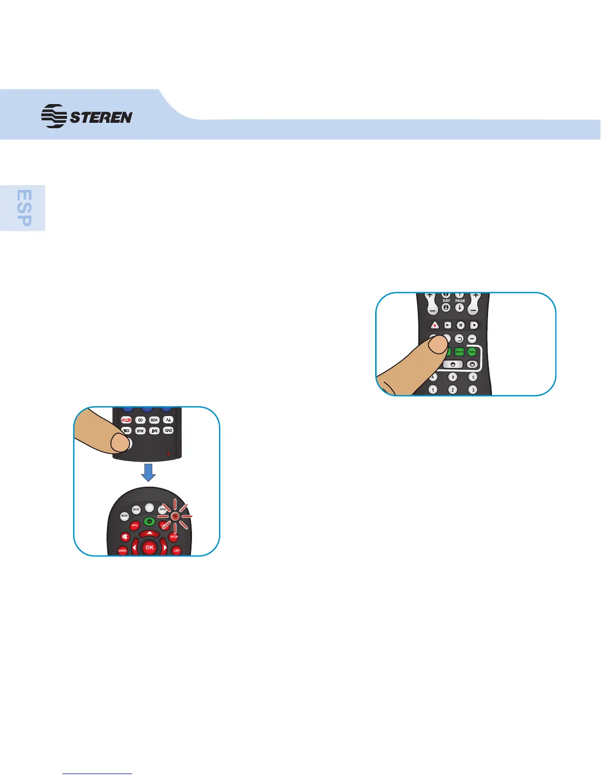 1. Mantenga pulsado el botón del equipo (TV, DVD, etc.) que desea programar hasta que el