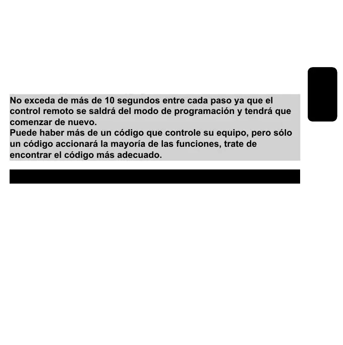 control remoto se saldrá del modo de programación y tendrá que