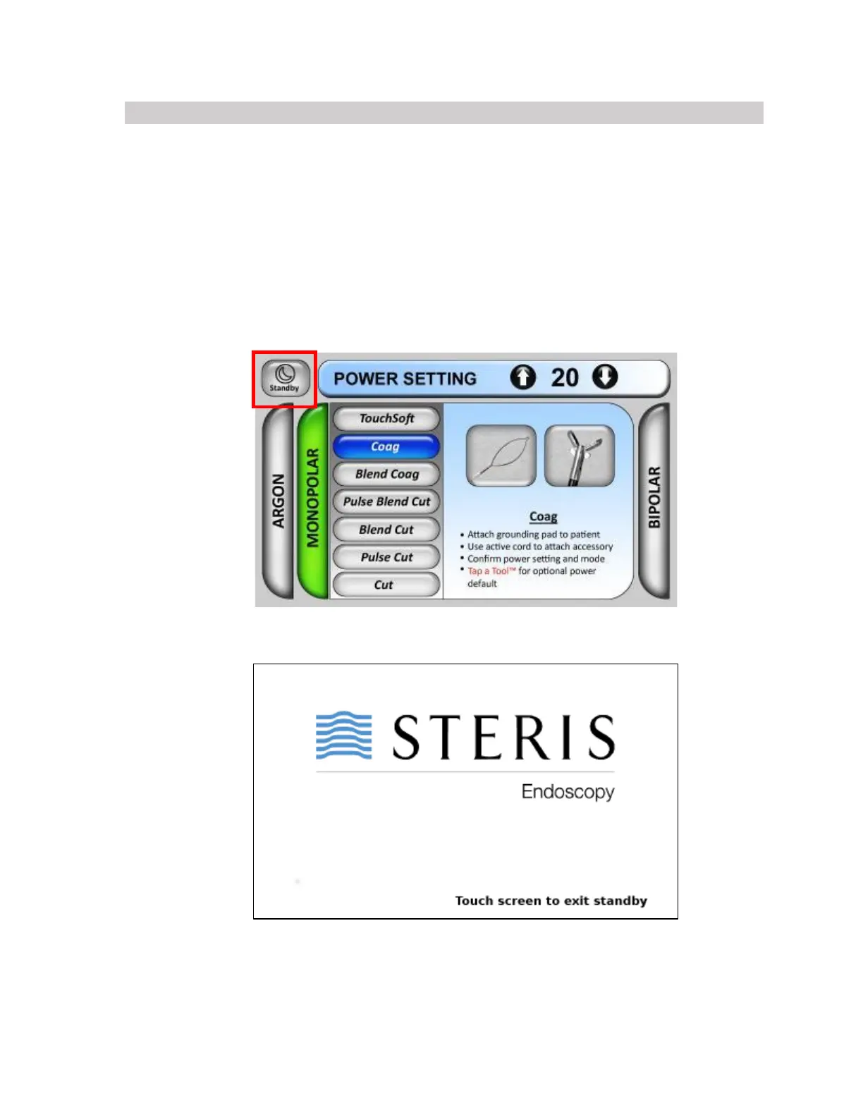 by the standby button on the gi4000 ESU footswitch or the standby icon on the upper left-