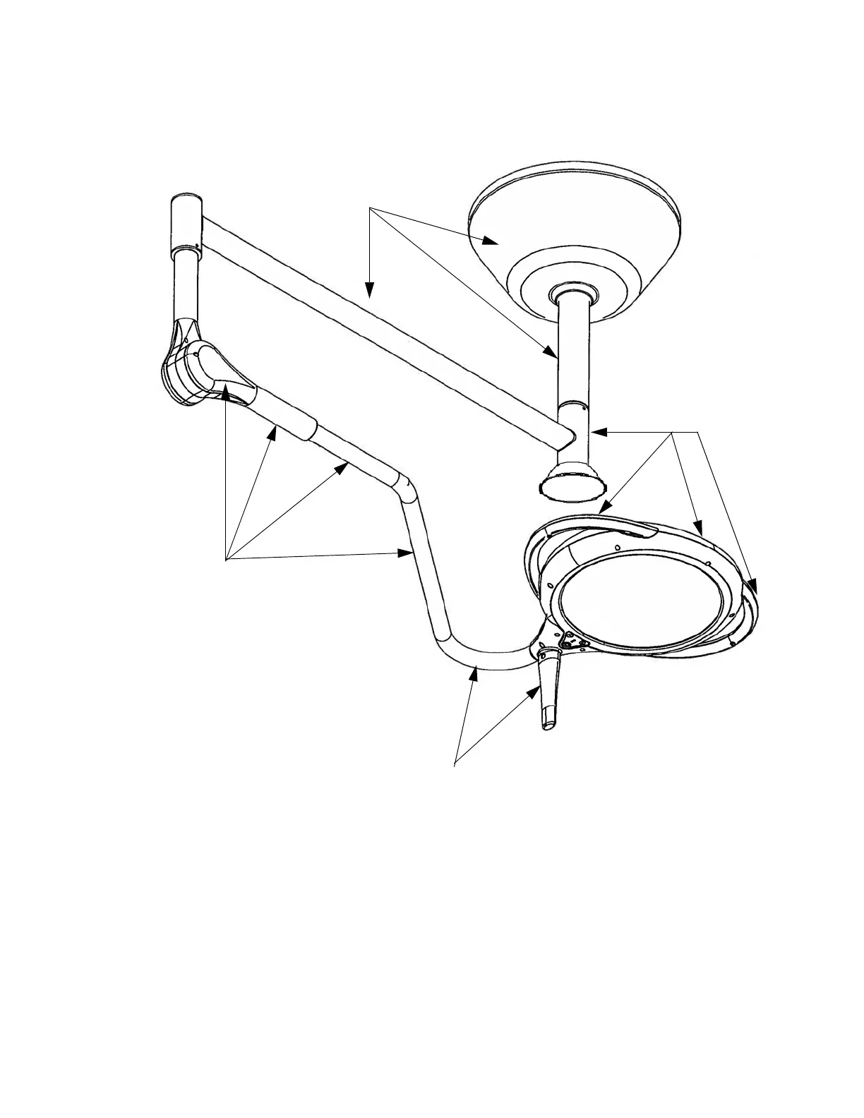 Steris Harmony LED385 - Figure 4-1. Areas to be Cleaned (Ceiling Mounted Version)