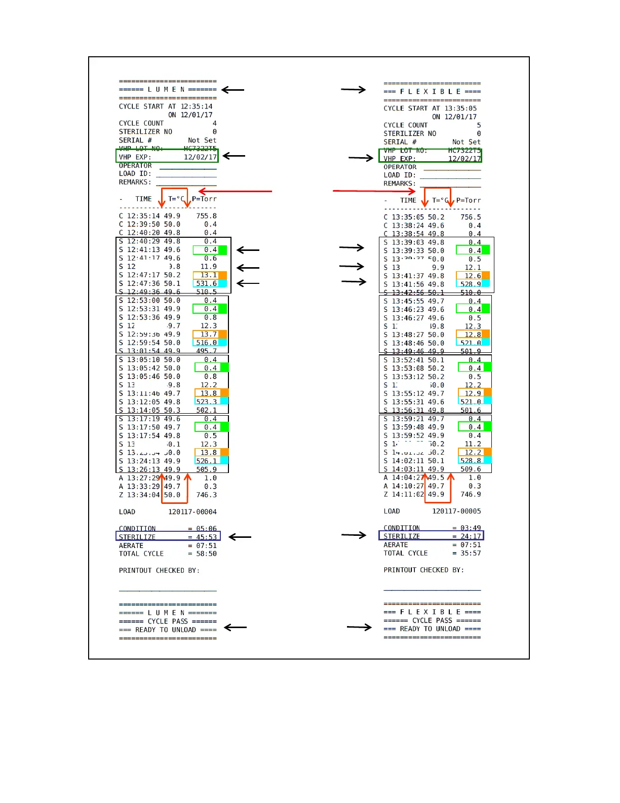 Figure 9-1. Labelled Extended Lumen/Flexible Cycle Printout (Typical)