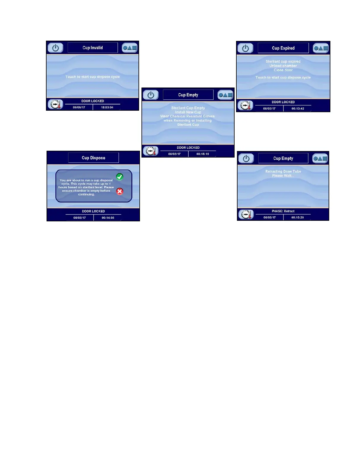 Figure 4-3. Control Screens: Sterilant Cup