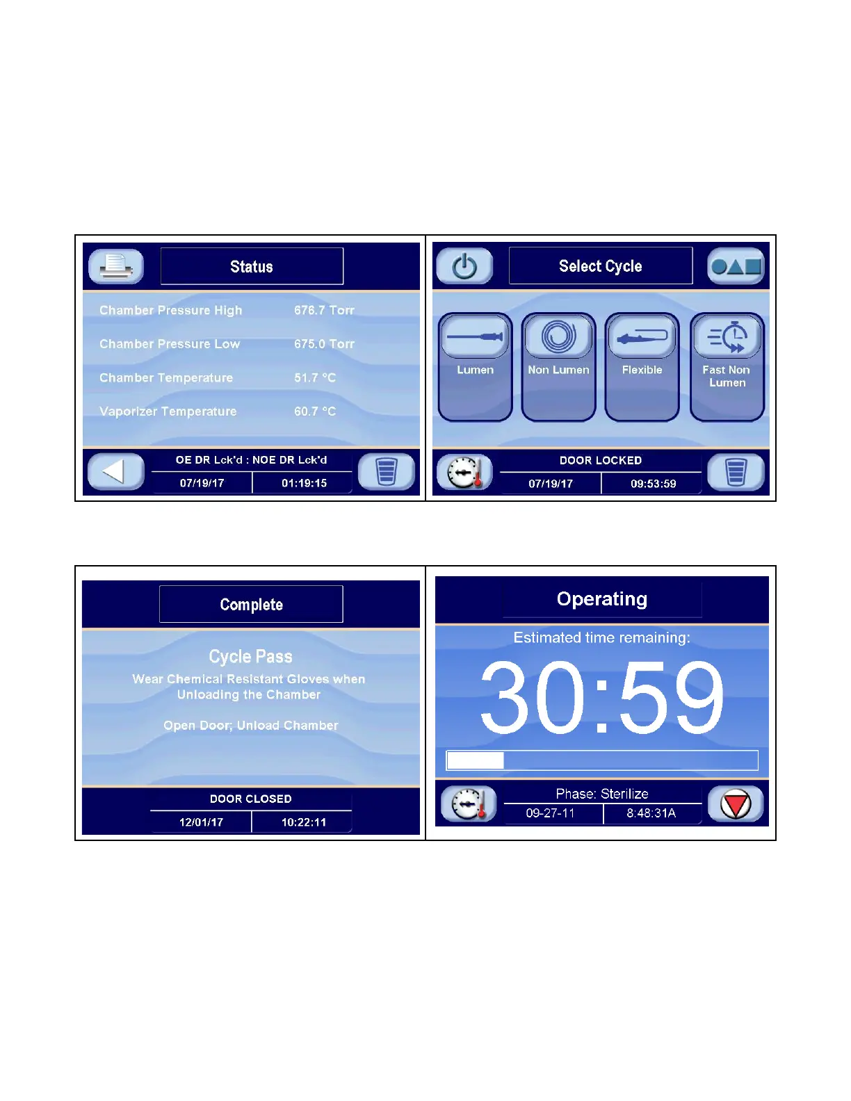 • Generally, when the Sterilization Unit is in-cycle, displays appear automatically and, unless an abnormal condition