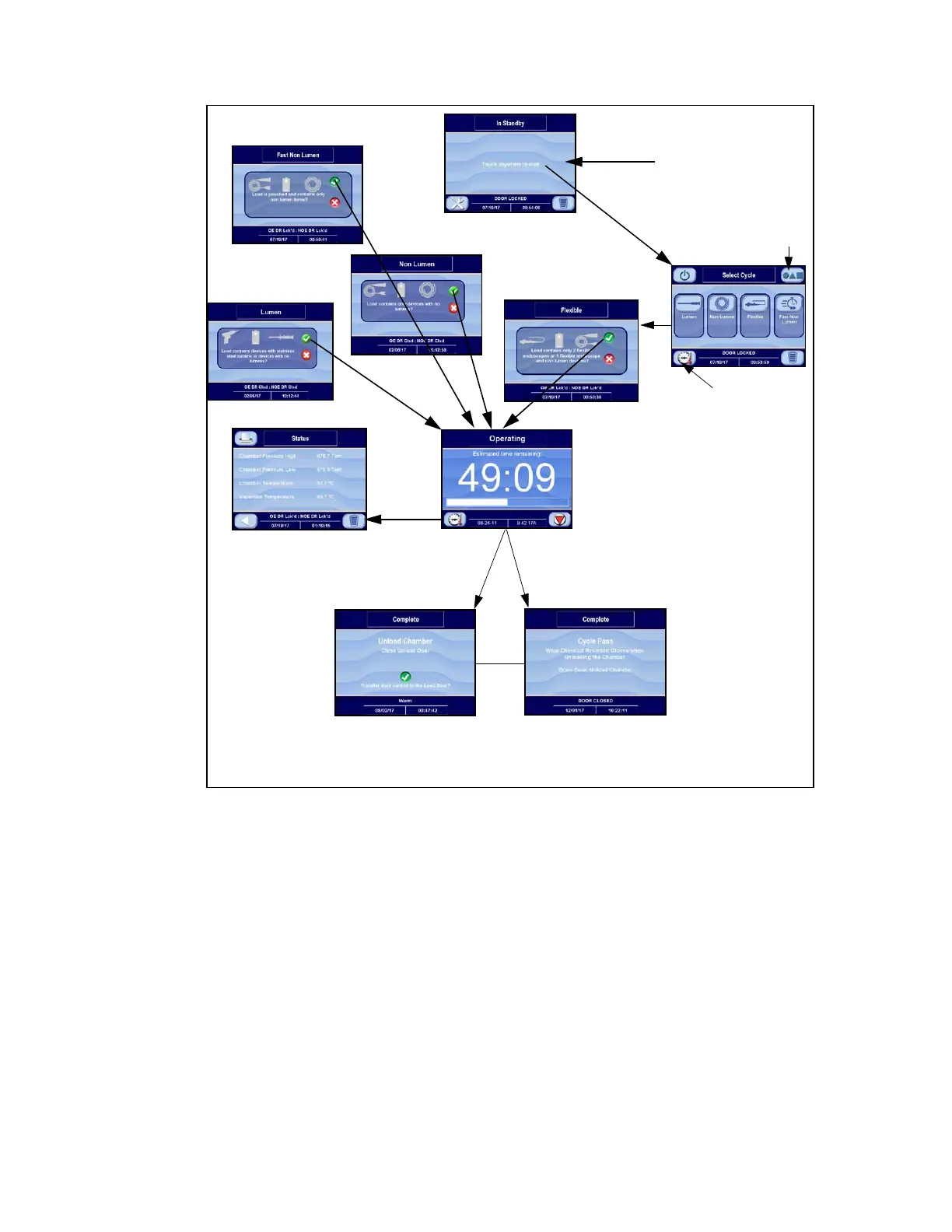 c. Press Status touch pad and STATUS (Out-of-Cycle) screen displays (see Figure 6-6). Press Back Arrow