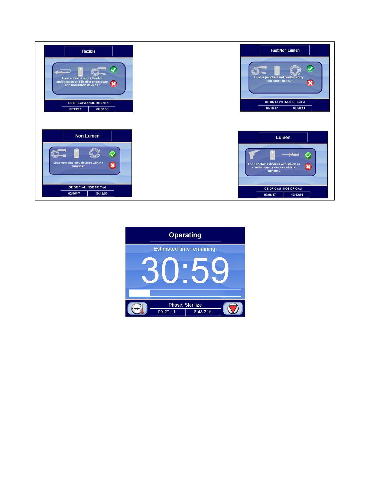 Parameters of the Sterilization Unit Cycles are not adjustable; however, operator and supervisor (refer to Appendix B)