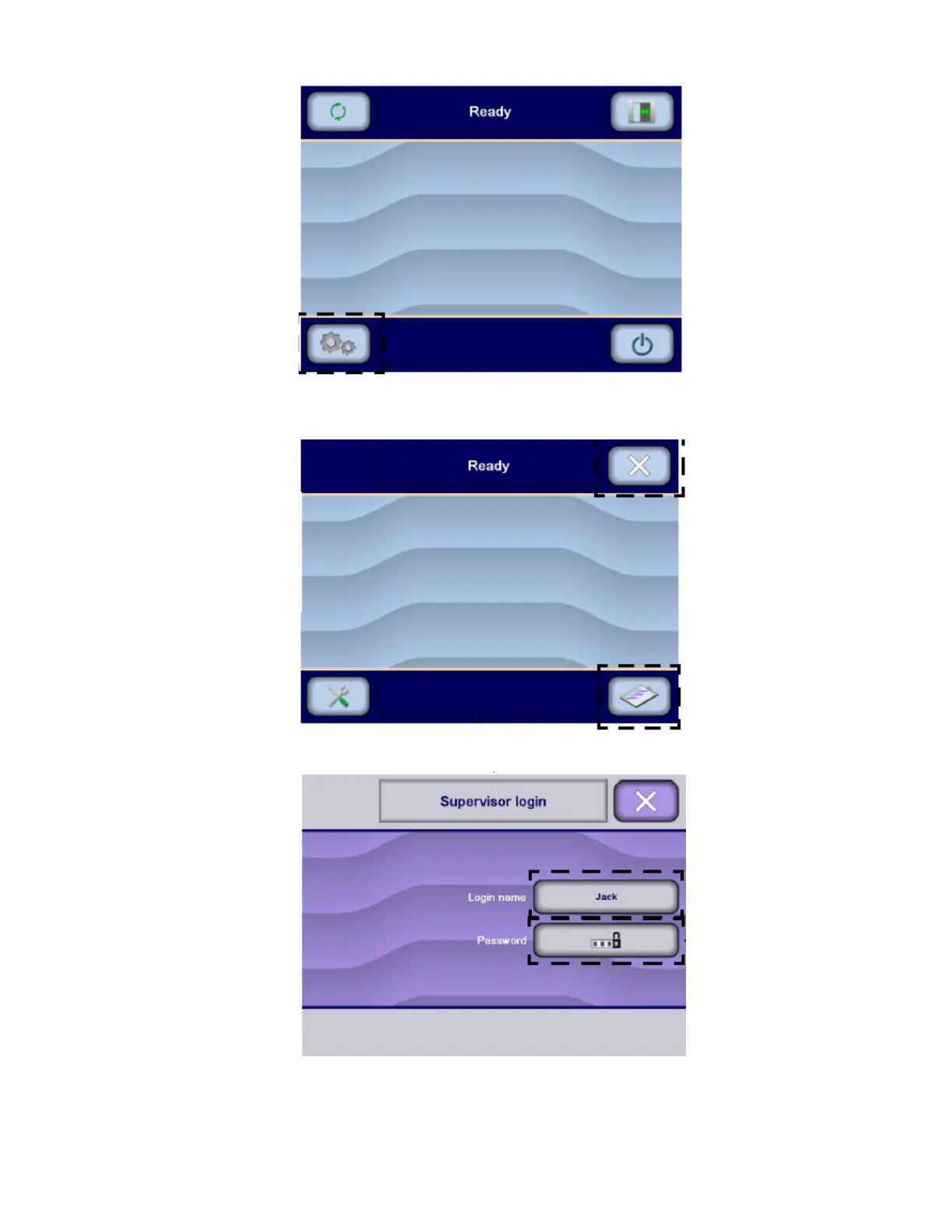 2. Display shows second Ready screen. Press Supervisor mode on touch screen.