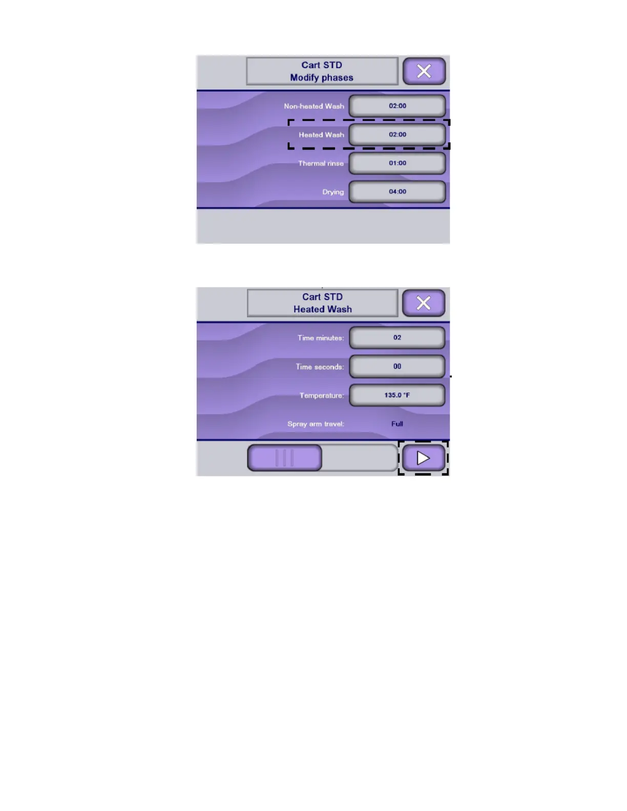 NOTE: On Modify phases screen, press Right arrow to scroll across touch screen to view following menus.