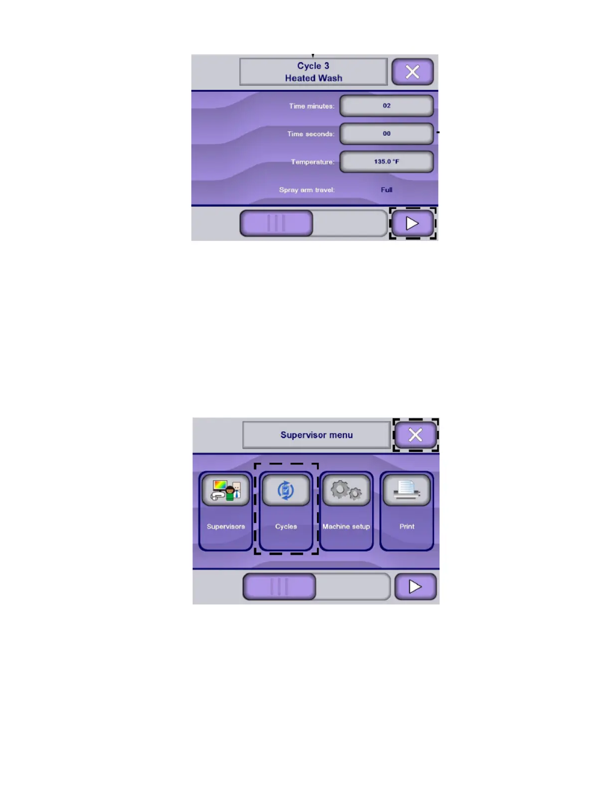 10. Follow instructions on touch screen to modify all appropriate cycle phases parameters. Parameters that can be