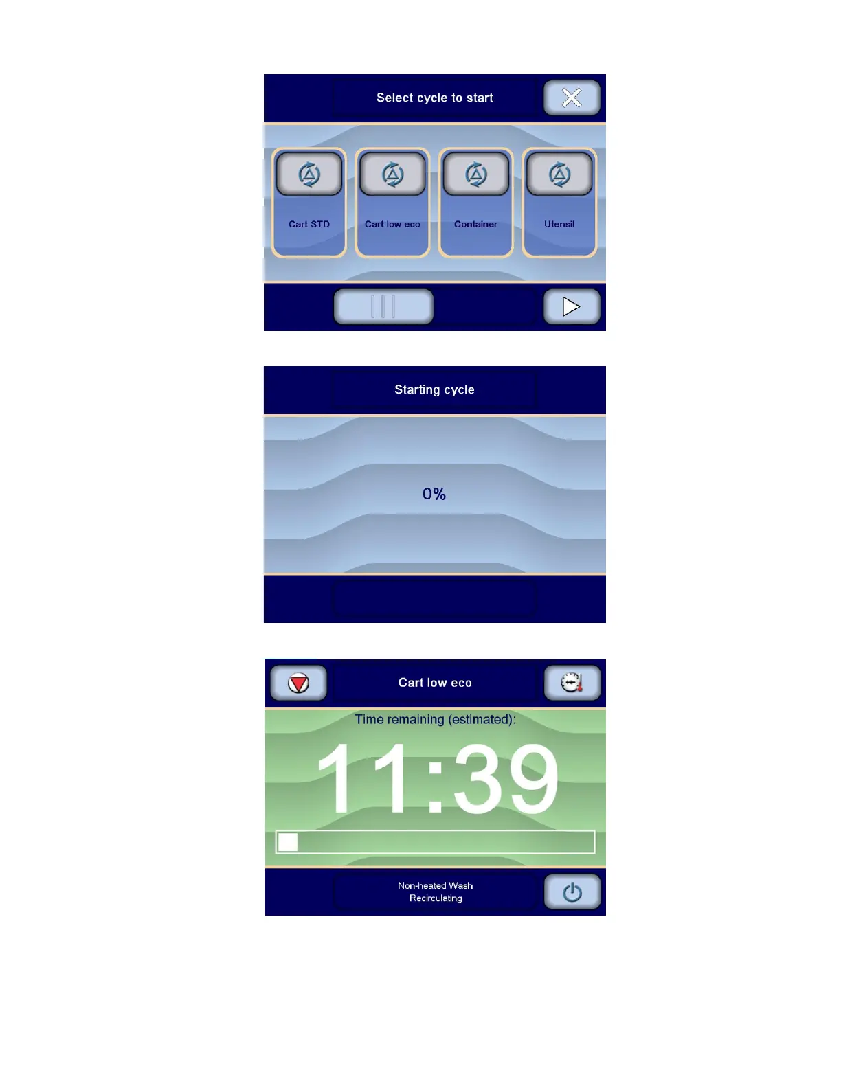 6. Press CART LOW ECO touch pad to select cycle. Display shows cycle start sequence.