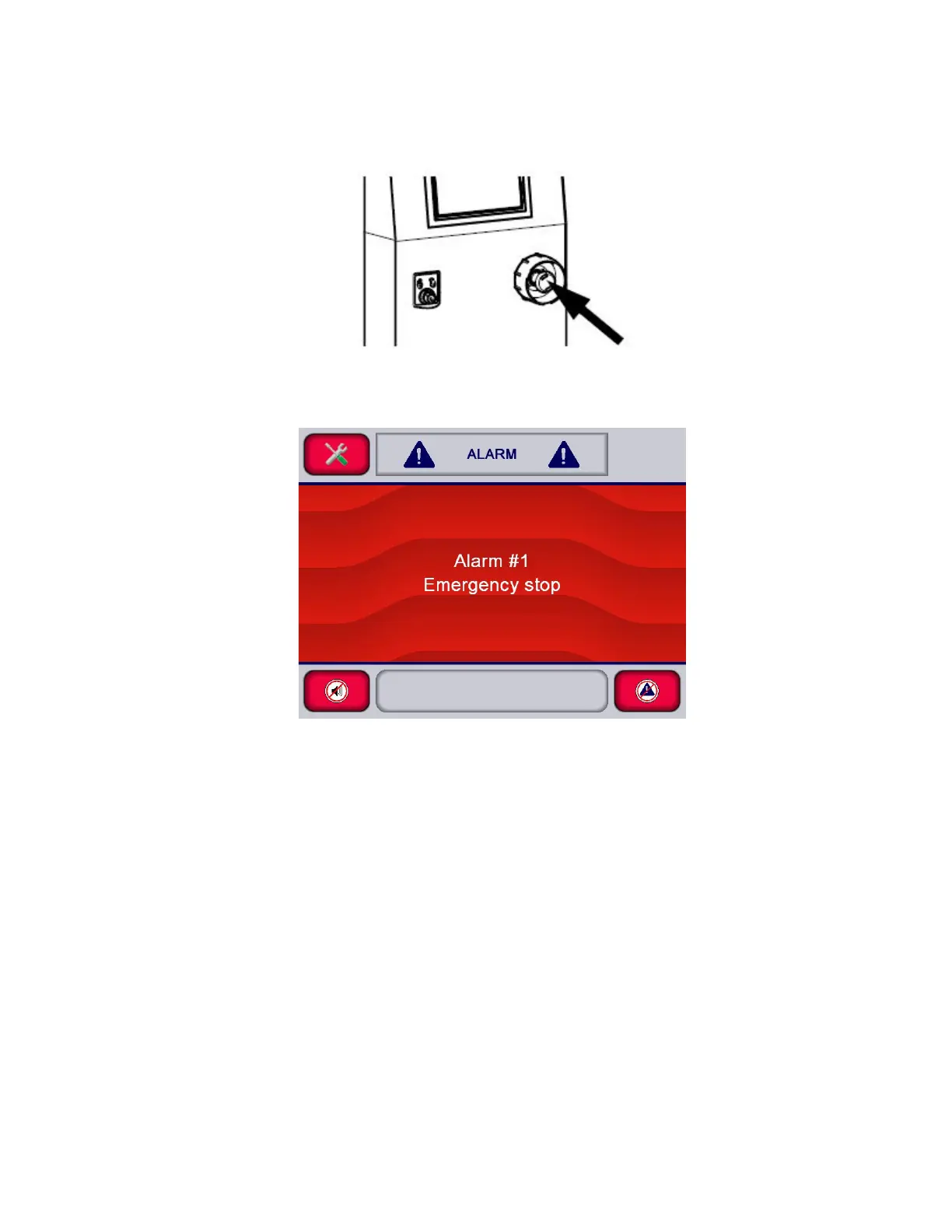 4. Release Emergency Stop pushbutton, then acknowledge alarm and resume washer operation.